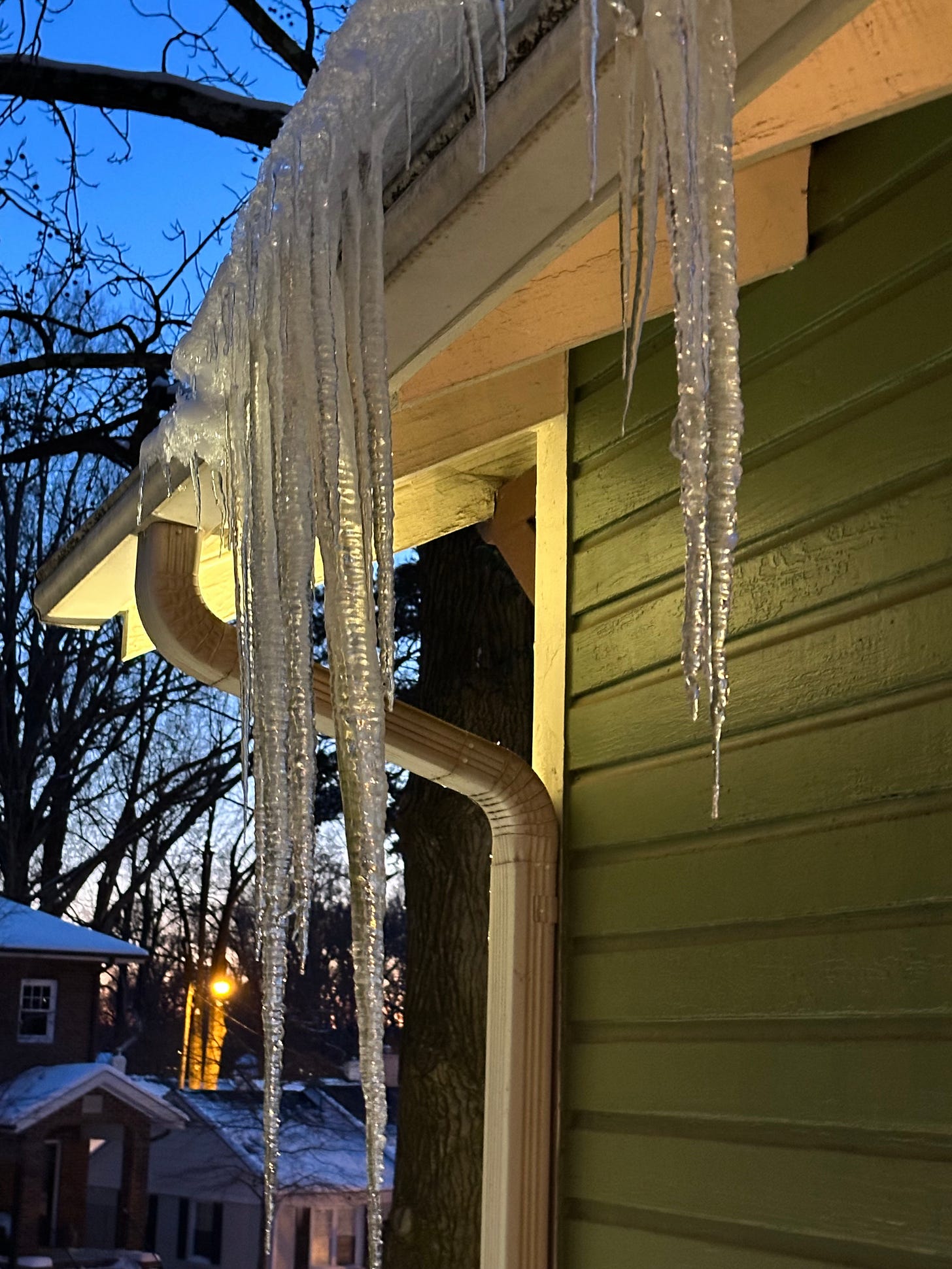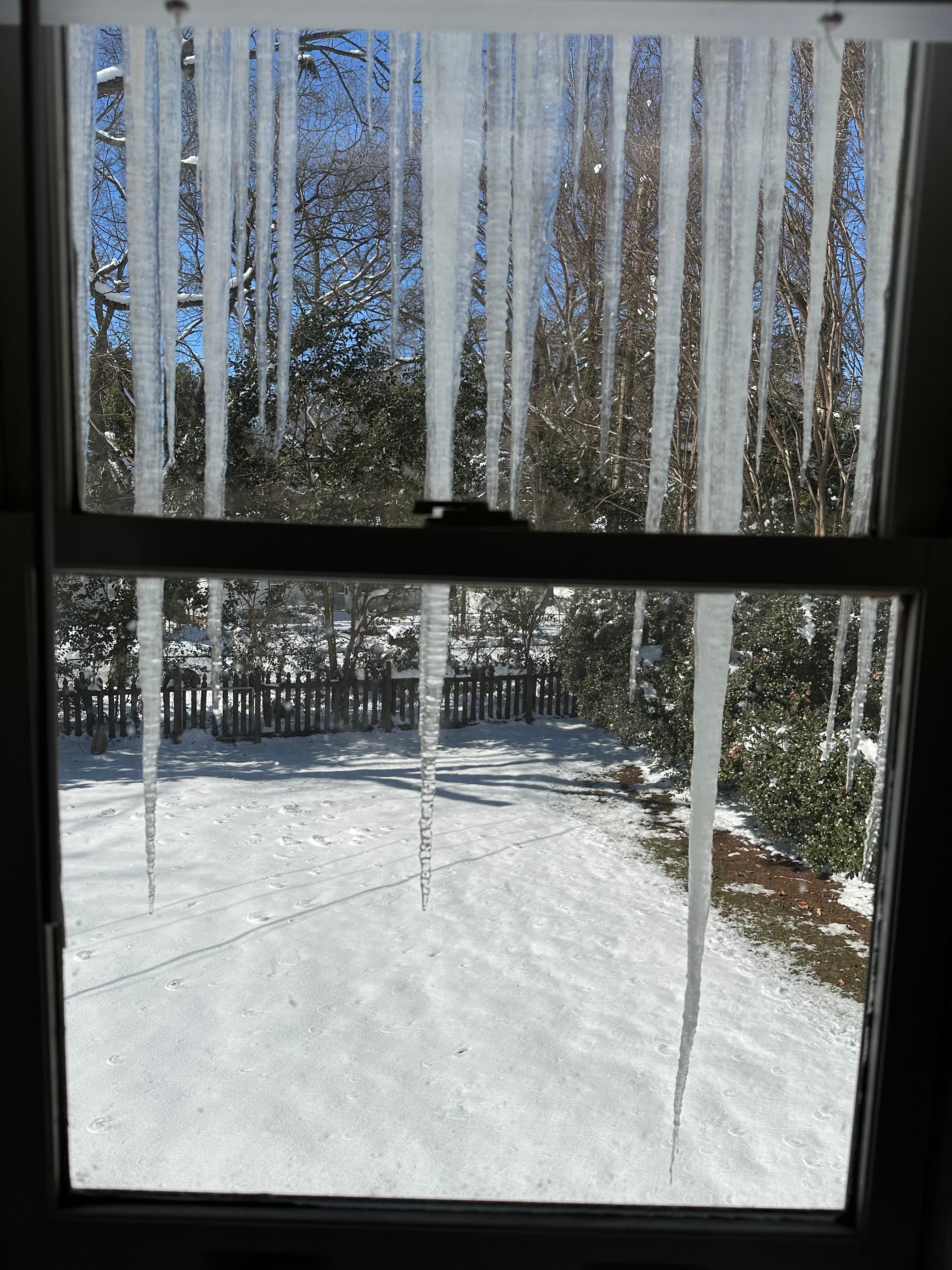 Then on Sunday it melted a bit and refroze. And that’s when the icicles came out. Alix got some great photos: