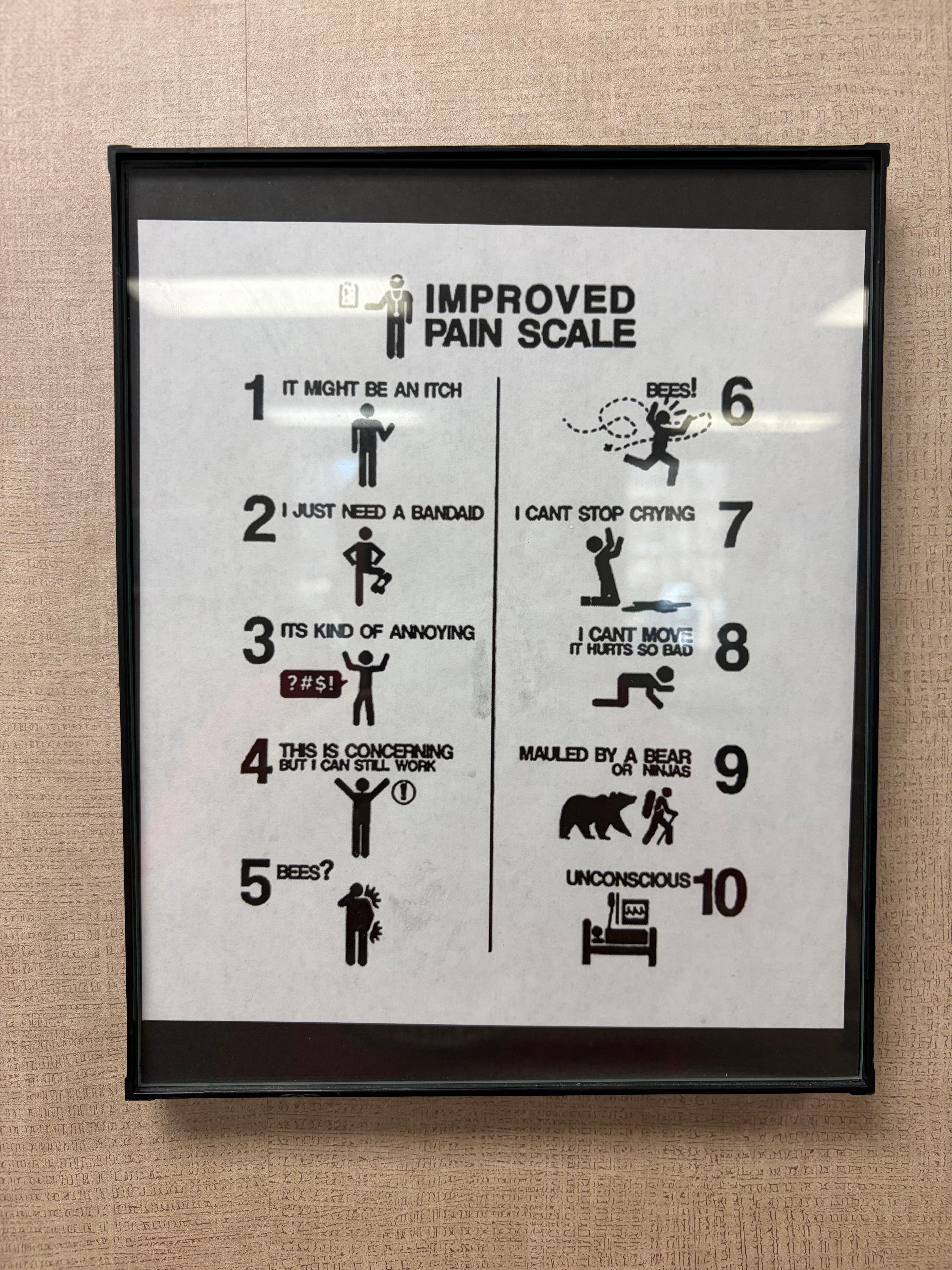 Given my lucky lack of pain in my life, I didn't have a good handle on the pain scale. What is real pain, anyway? And besides, I didn't want to be a wimp.