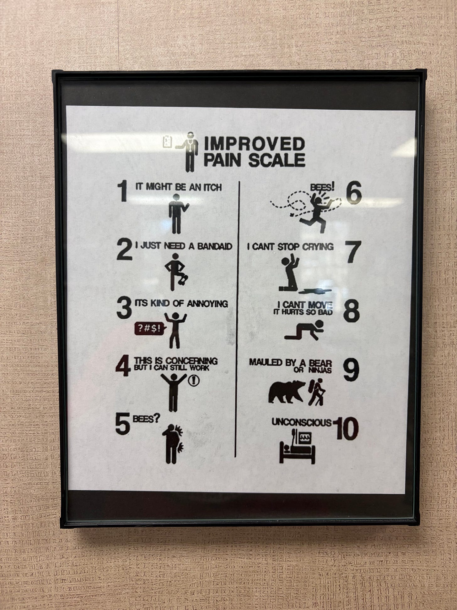 The physical therapy folks are working me hard but are very kind. It helps that they have a sense of humor. This is on the wall at the PT clinic: