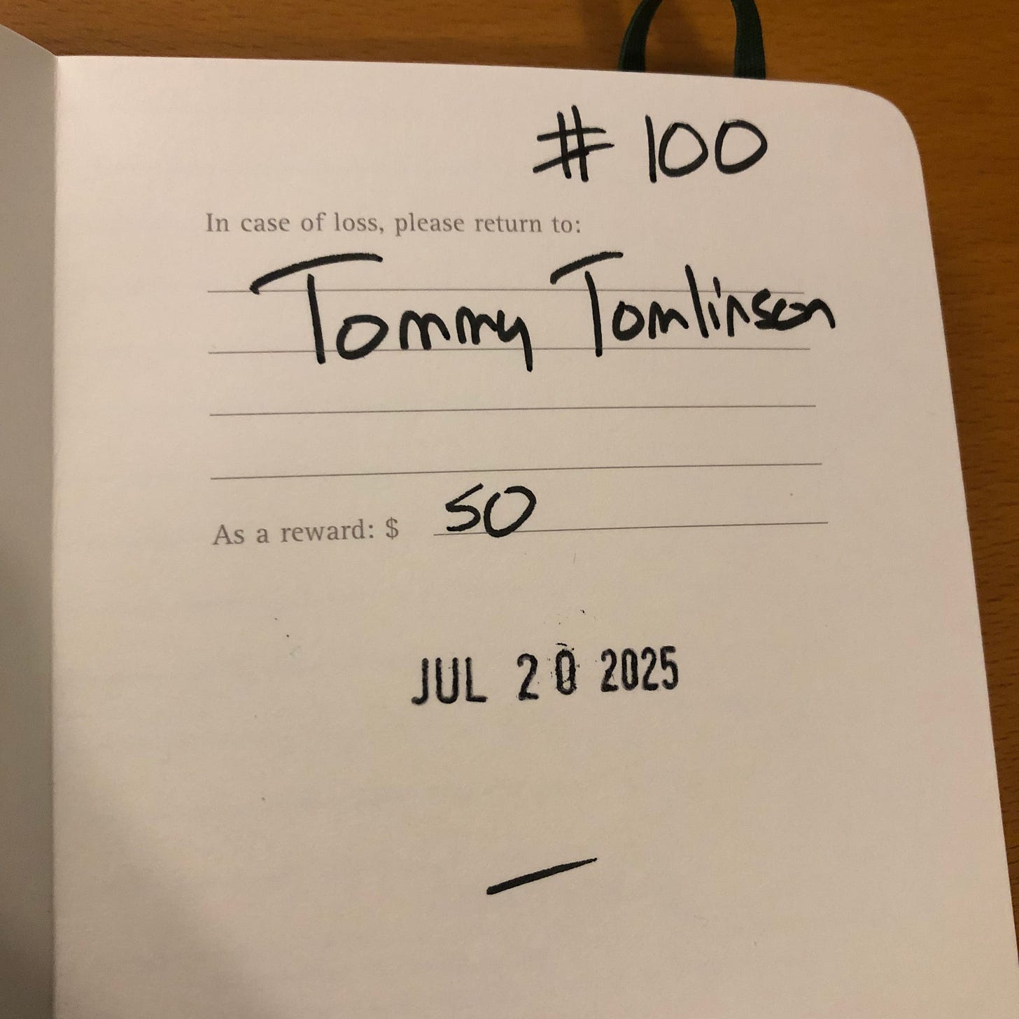 All told, 100 notebooks comes to about 1,900 pages covering more than 7,000 days, and lord knows how many words. It’s the part of the iceberg under the waves, what holds up the tiny fraction that everybody sees above the surface. I love getting out that Moleskine every night, pulling on that little cloth bookmark until it opens to the next blank page. I love festooning the notebooks with stickers and marking ideas with miniature Post-Its and sometimes just getting out the box of old notebooks and smelling it. There’s no hard drive or cloud storage that could ever replace it.